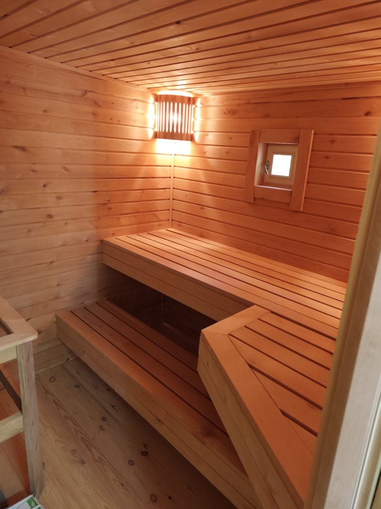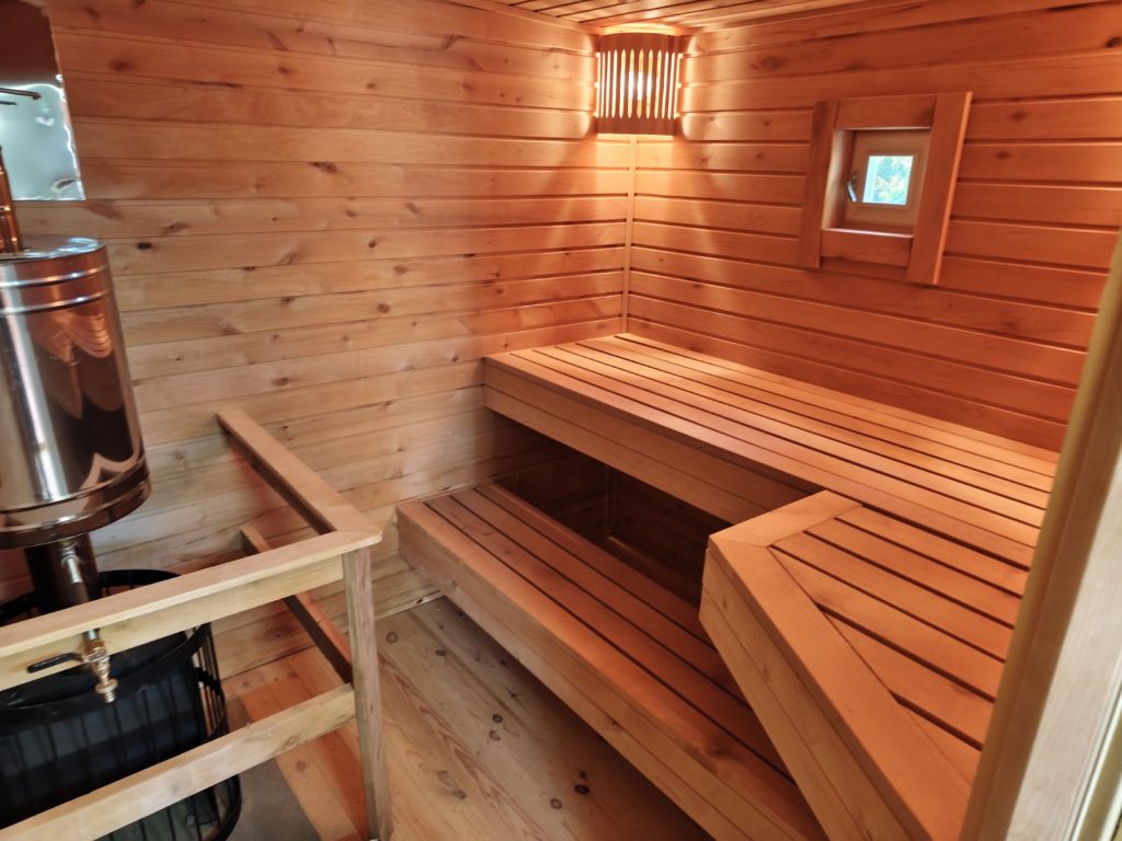 - Чистовая отделка внутри: вагонка из осины или липы (не выделяет смолу, не обжигает кожу).