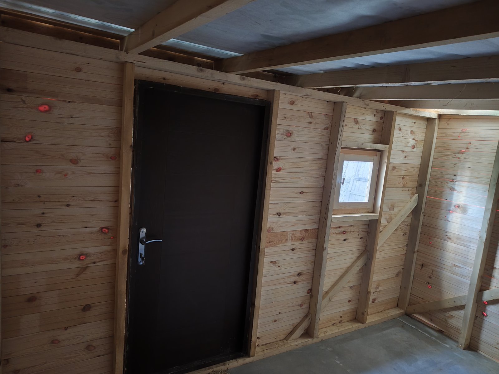 Остекление и освещение: Установлено деревянное окно размером 60х60 см (с возможностью проветривания).