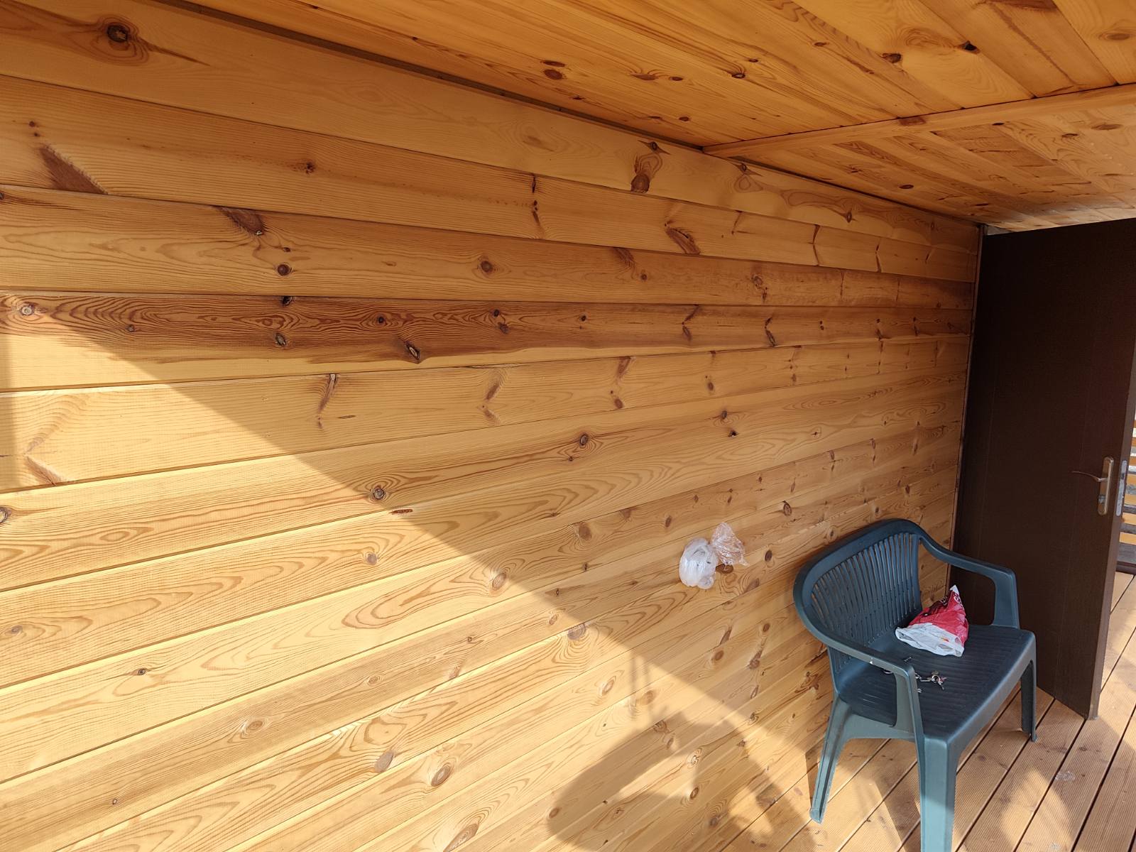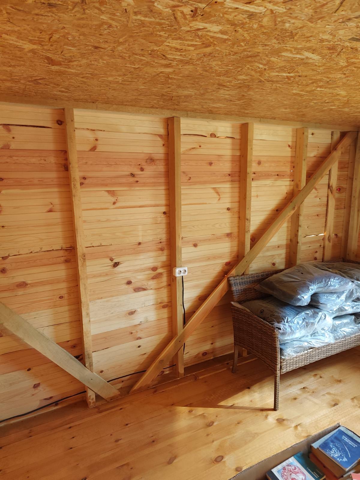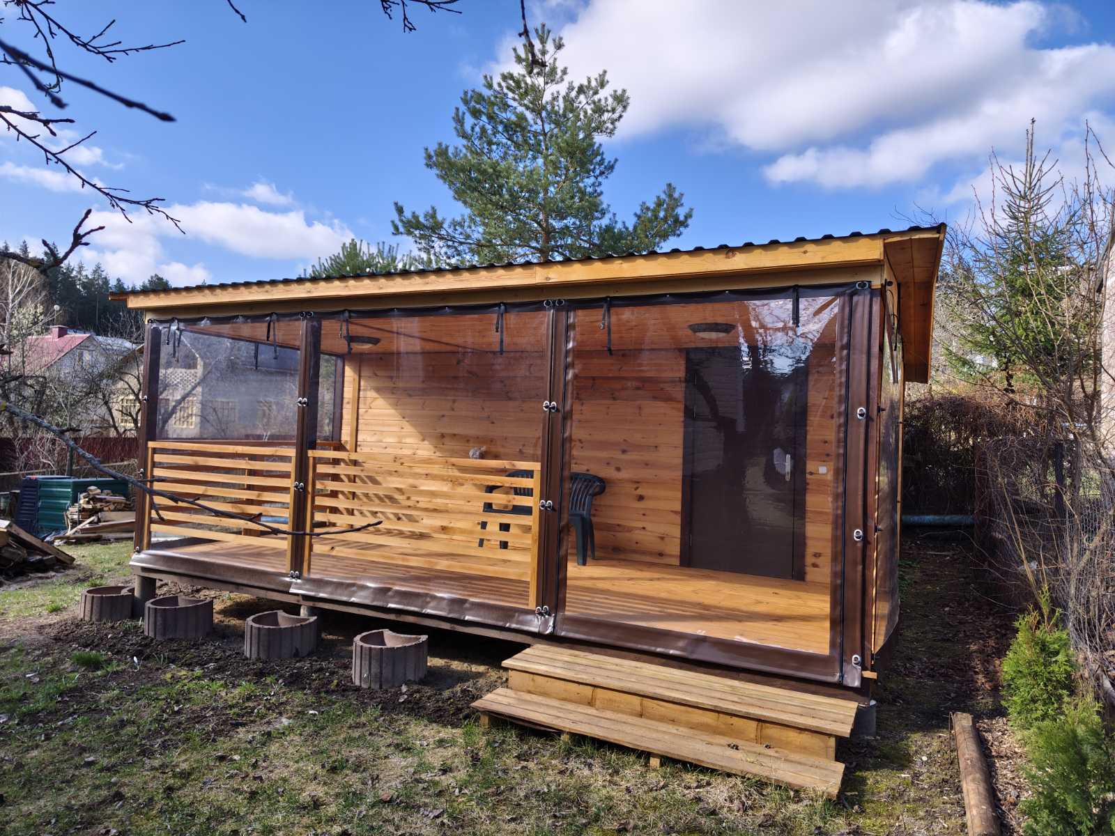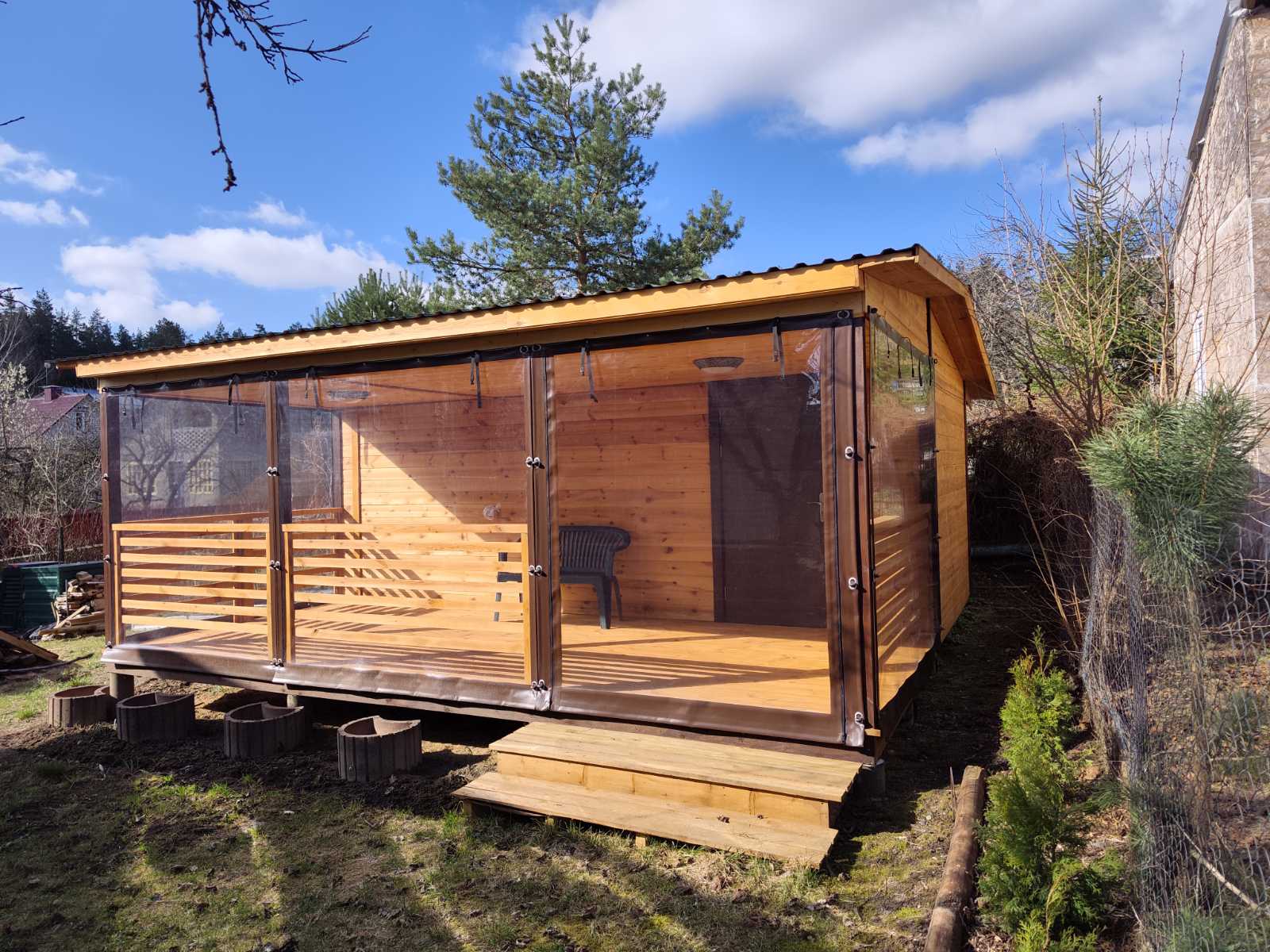 Стены — профлист (снаружи), внутри — открытый каркас