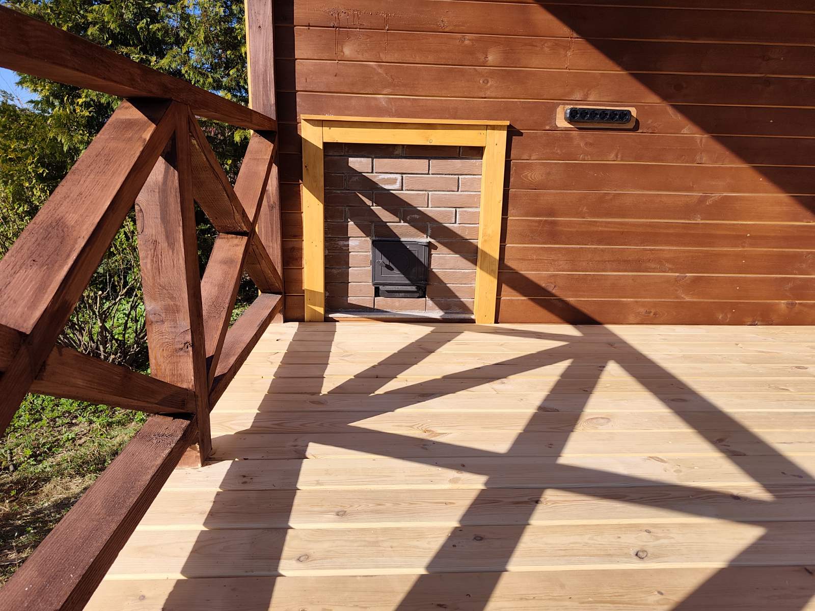Терраса 6 на 2,5: настил из половой доски лиственницы или ДПК, ограждение по периметру.
