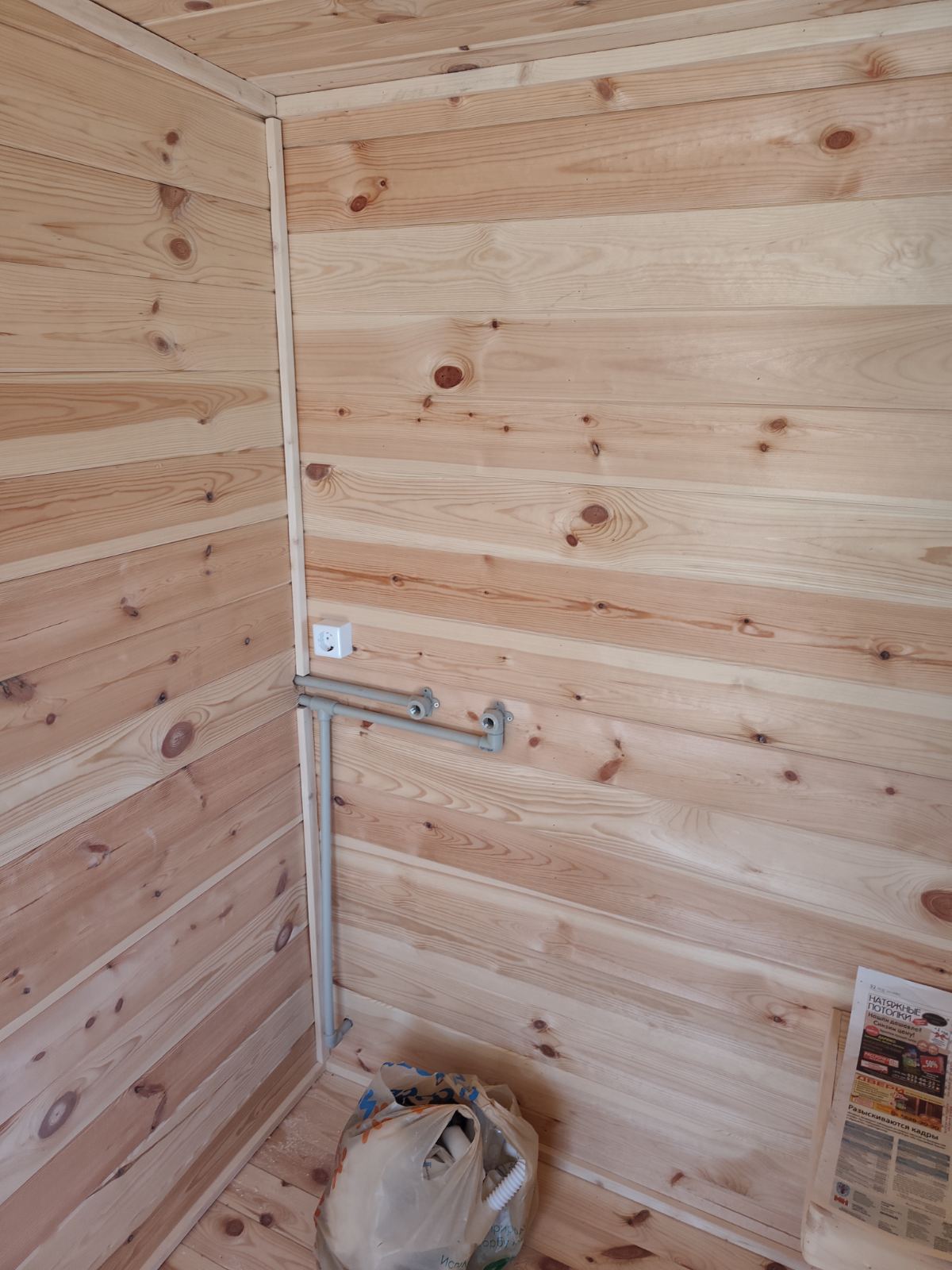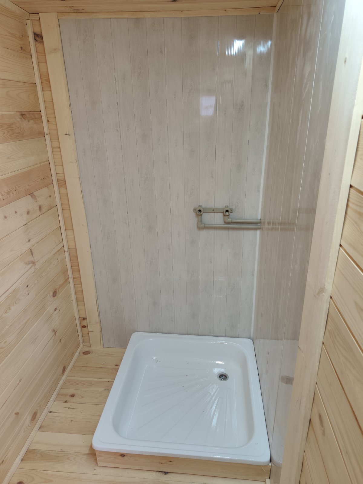 Стенка в душкабине обшита сайдингом