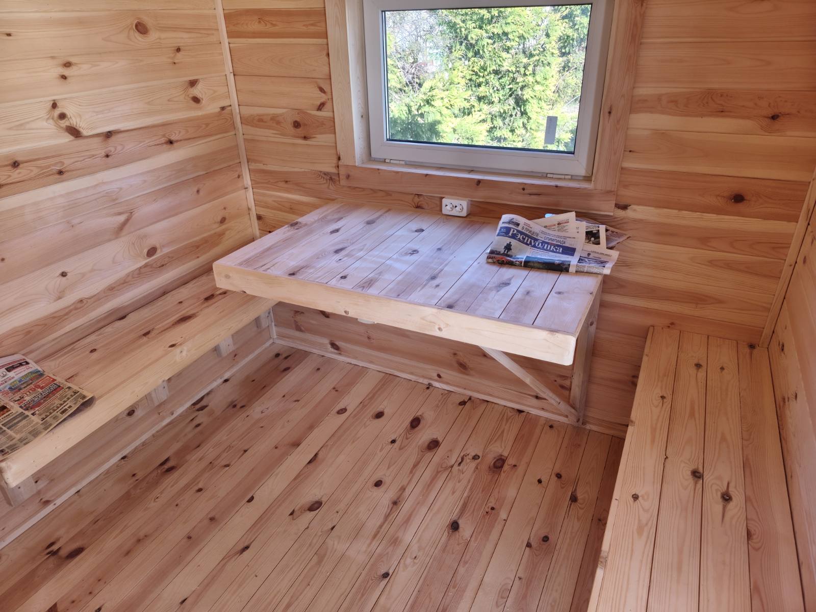 Чистовая отделка внутри: вагонка из осины или липы (не выделяет смолу, не обжигает кожу).
