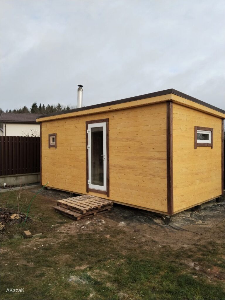 Каркасно-щитовые, обшитые вагонкой хвойных пород древесины, со стороны парной осиновая вагонка
