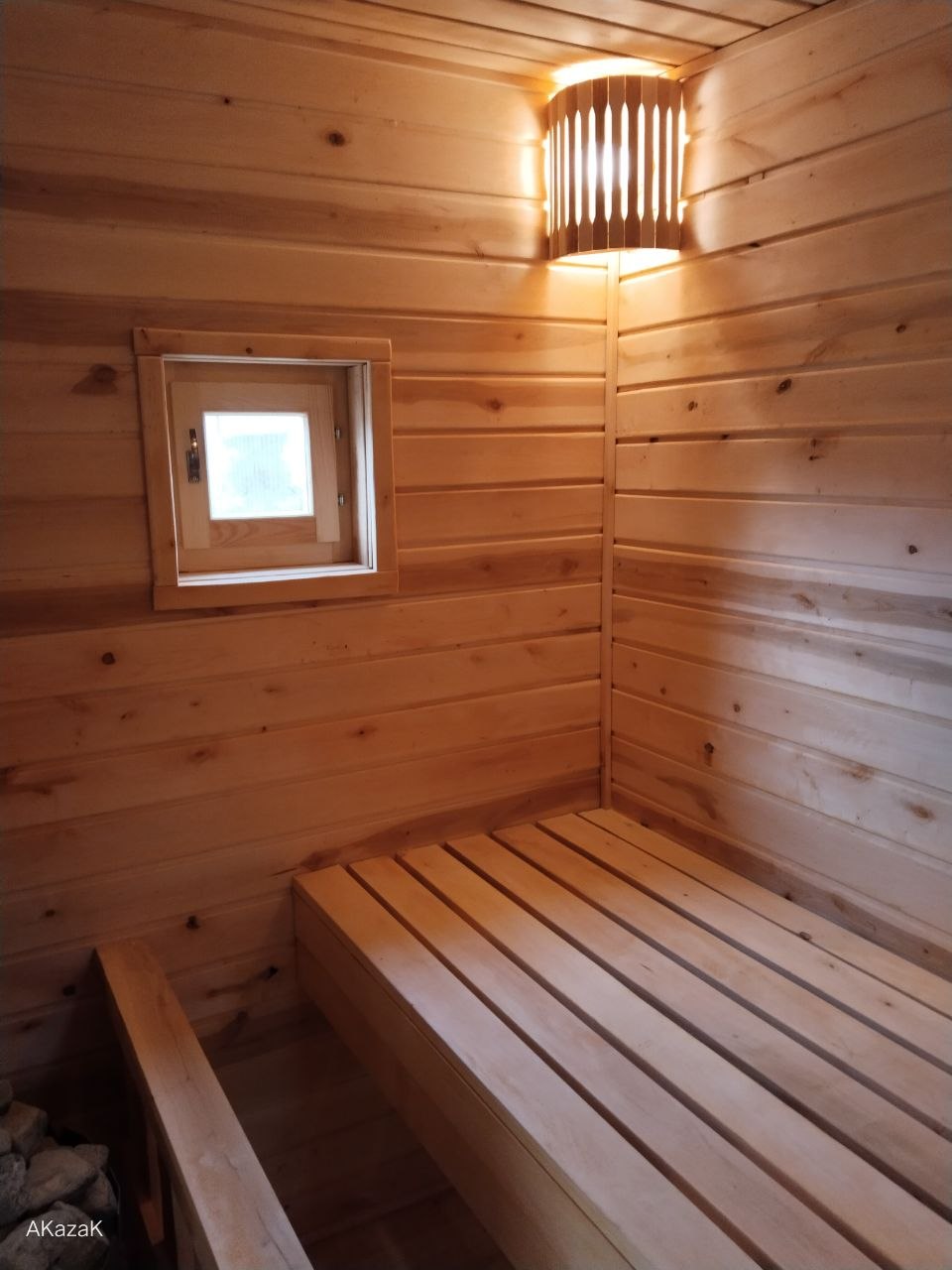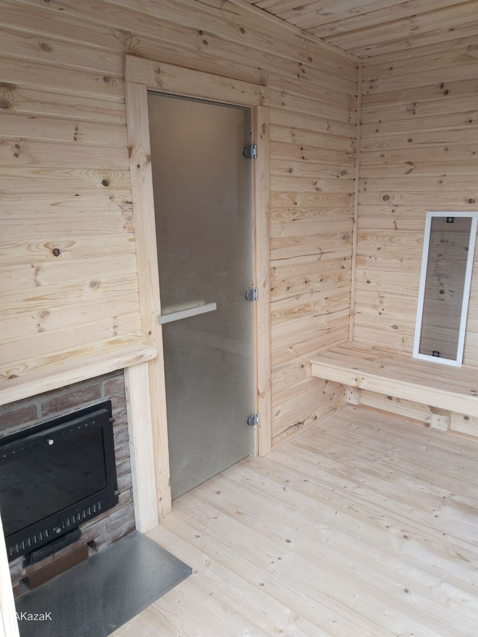 Снаружи баня полностью обработана антисептиком. Дополнительная обработка половых лаг и саней бани маслом против гниения